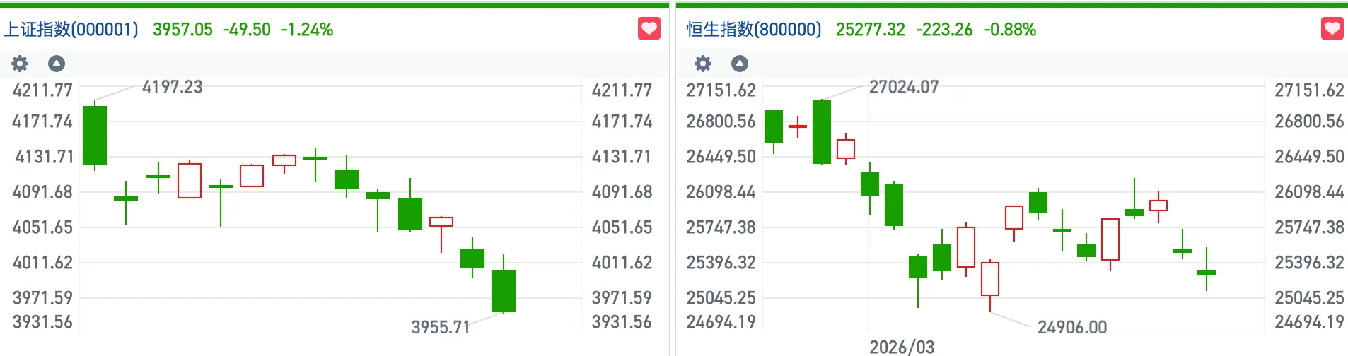 整体上看,恒指在触及26000点压力位后随即剧烈回调。