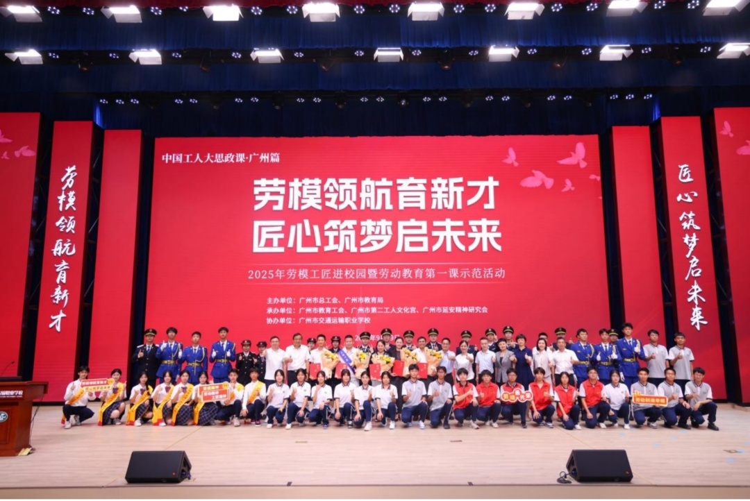 由广州市总工会、广州市教育局主办,广州市教育工会、广州市第二工人文化宫、广州市延安精神研究会承办的“劳模领航育新才 匠心筑梦启未来”2025年劳模工匠进校园暨劳动教育第一课示范活动在广州市交通运输职业学校开讲,也成为“中国工人大思政课・广州篇”的又一生动实践。
